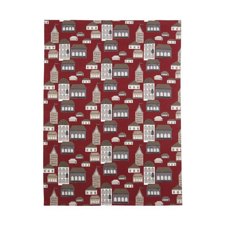 En kjøkkenhåndduk i bomull med mange husmotiver er en moderne detalj som kan gi et unikt preg til kjøkkenet. Denne typen kjøkkenhåndduk fungerer ikke bare praktisk, men er også et dekorativt innslag.”